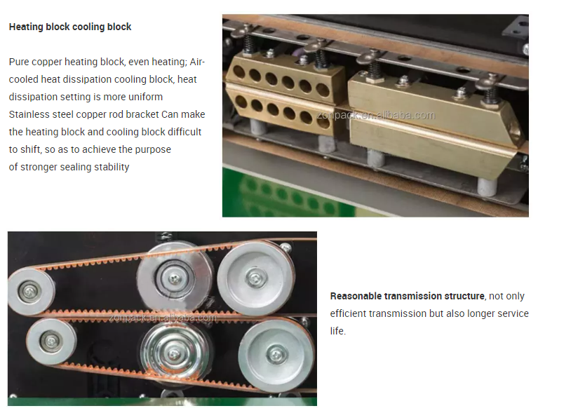 2. Our food bag continuous plastic sealing machine adopts electronic constant temperature mechanism and stepless speed regulation transmission