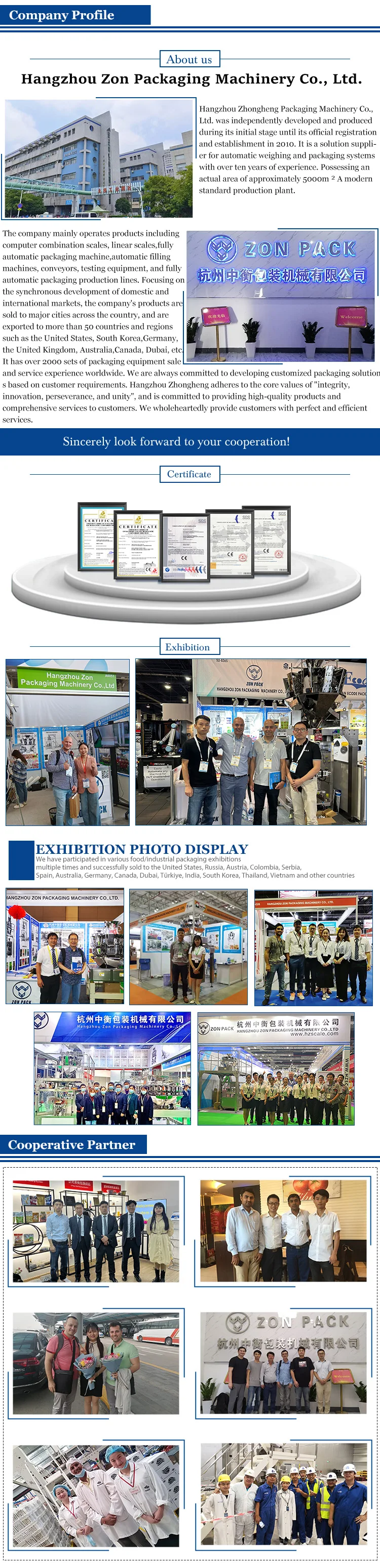 Hangzhou Zhongheng Packaging Machinery Co., Ltd. was independently developed and produced during its initial stage until its official registration and establishment in 2010. It is a solution supplier for automatic weighing and packaging systems with over ten years of experience. Possessing an actual area of approximately 5000m ² A modern standard production plant. The company mainly operates products including computer combination scales, linear scales, fully automatic packaging machines, fully automatic filling machines, conveying equipment, testing equipment, and fully automatic packaging production lines. Focusing on the synchronous development of domestic and international markets, the company’s products are sold to major cities across the country, and are exported to more than 50 countries and regions such as the United States, South Korea, Germany, the United Kingdom, Australia, Canada, Israel, Dubai, etc. It has over 2000 sets of packaging equipment sales and service experience worldwide. We are always committed to developing customized packaging solutions based on customer requirements. Hangzhou Zhongheng adheres to the core values of “integrity, innovation, perseverance, and unity”, and is committed to providing high-quality products and comprehensive services to customers. We wholeheartedly provide customers with perfect and efficient services. Hangzhou Zhongheng Packaging Machinery Co., Ltd. welcomes new and old customers from home and abroad to visit the factory for guidance, mutual learning, and joint progress!