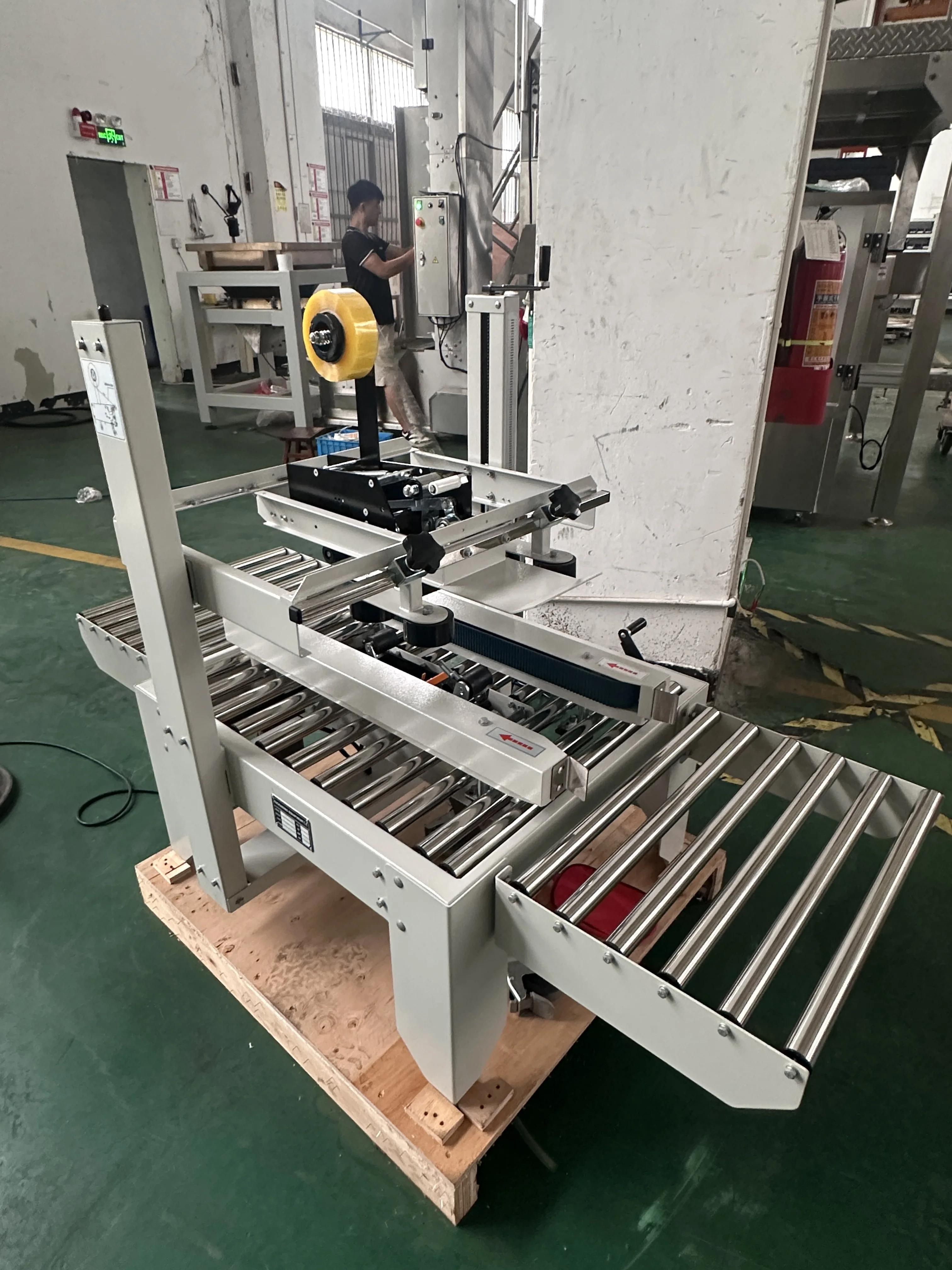The left and right drive box sealing machine is driven by both sides of the belt. It adopts instant tape sealing, upper and lower sealing, fast, stable, and the sealing effect is smooth, standardized and beautiful. It can be manually adjusted according to the carton specifications,width and height. It is simple and convenient, can replace labor, save 5-10% of consumables, is the ideal choice for enterprises to save costs, improve production efficiency, and achieve packaging standardization. The sealing machine is widely used used in food, medicine, toys, tobacco, daily chemical, electronics and