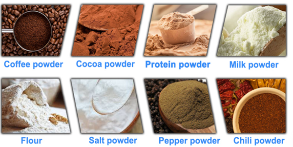 * Powder type: milk powder, glucose, monosodium glutamate, seasoning, washing powder, chemical materials, fine white sugar, pesticide, fertilizer, etc.