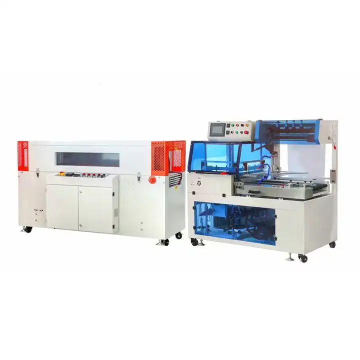 Fully automatic L-shaped sealing and shrinking machine packaging machine is a fully automatic unmanned packaging machine, which can be used with automatic packaging lines. feeding, bagging, sealing, cutting and shrinking are completed automatically.