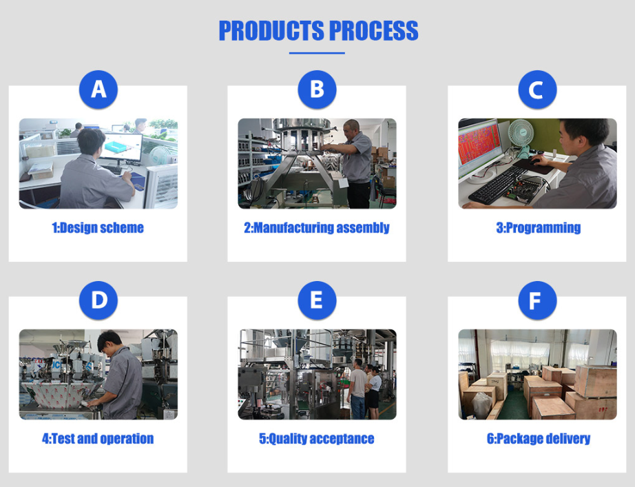 4. It completes the whole procedure of filling, measuring, bagging, date printing, charging(exhausting), product out-putting