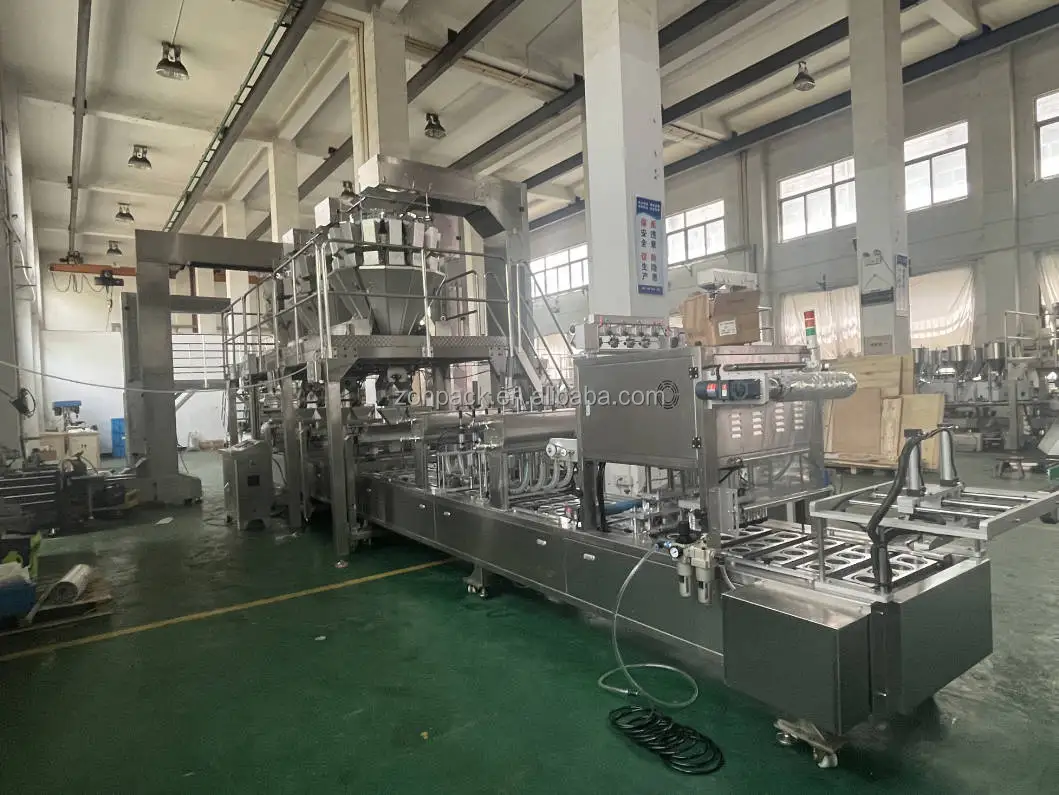 This packing system is suitable for cups filling and sealing.It’s suitable for solid,liquid products,such as noddles,cookies,oats,snacks and so on.