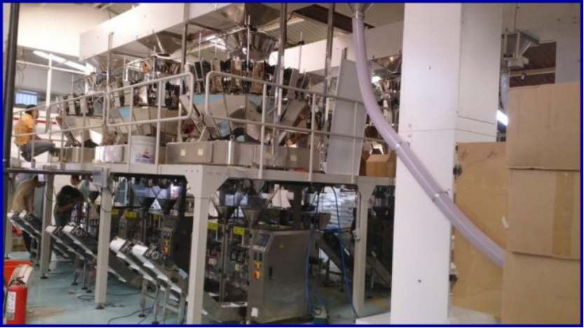 one 20 heads weigher work with 2 vertical packing machines, so total speed is about 720 bags/min. We delivered this project in 2013, the customer place order for another 4 vertical packing machines at the end of 2019.