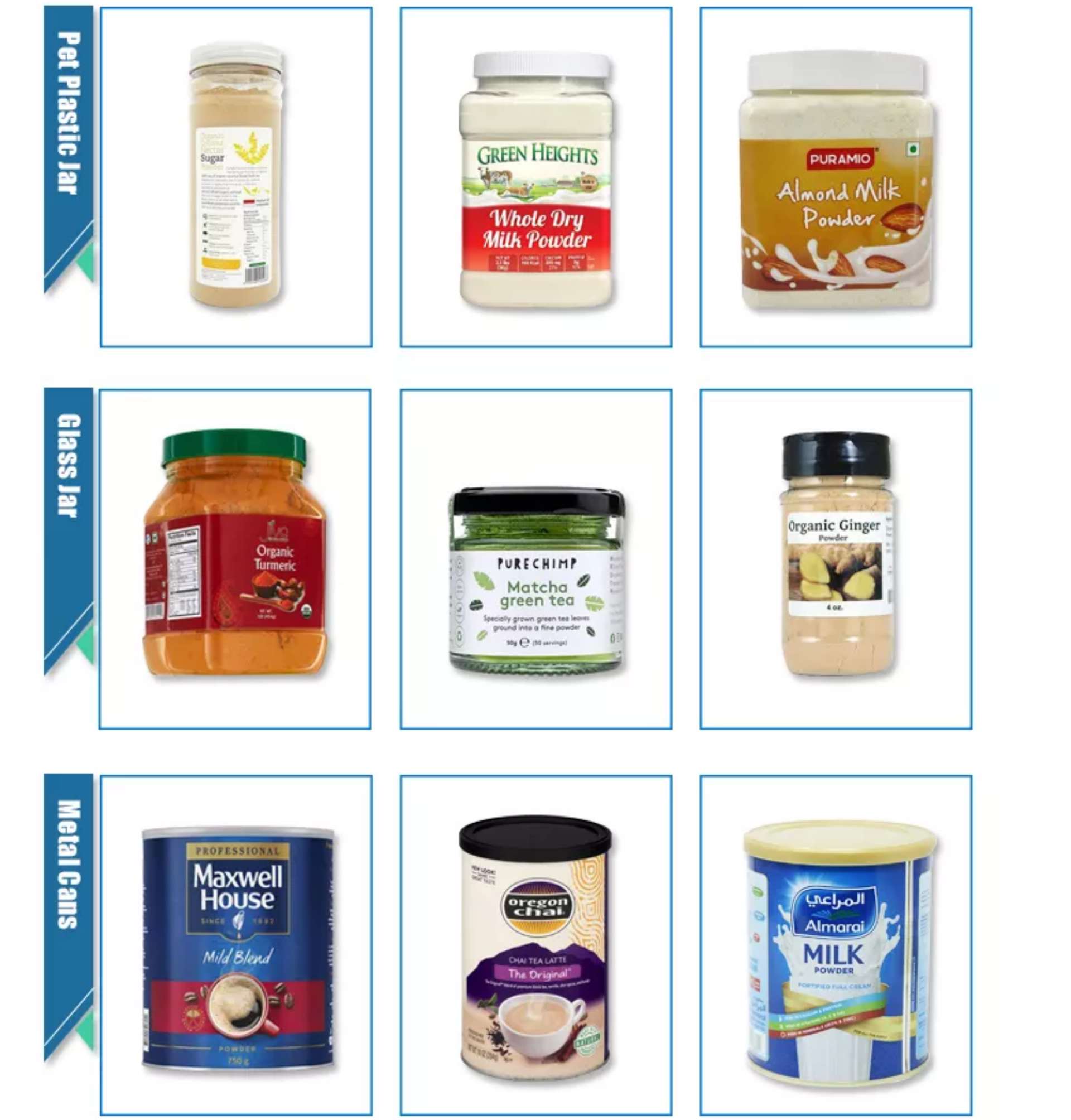ZH-JR Powder Filling Packing Machine it’s suitable for measuring /filling /packing for powder products, such as milk powder/coffee powder/white flour/bean powder/spice powder and so on.Can pack round bottle,flat cans,jars and so on.